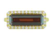 14K Yellow Gold Elongated Elegance East West Set Garnet with Diamond Halo Ring