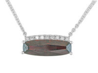 14K White Gold Elongated Elegance East West Set Black Agate with Diamond Accent Necklace