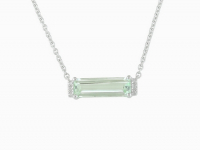 14K White Gold Elongated Elegance East West Set Green Amethyst with Diamond Accent Necklace