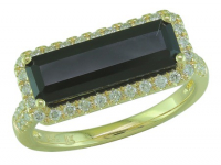 14K Yellow Gold Elongated Elegance East West Set Black Agate with Diamond Halo Ring