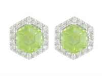 14K White Gold Hexagon Peridot with Diamond Halo Earrings