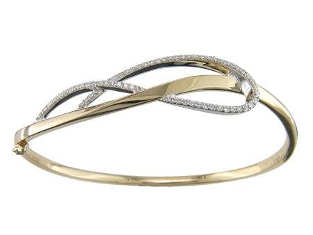 18K White & Yellow Gold Diamond Crossover Bangle Bracelet