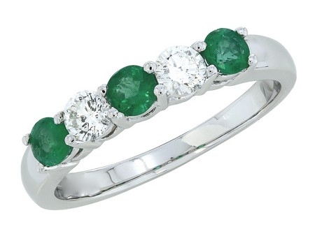 3 Round Emerald 0.45ct, 2 Round Diamond 0.30ct