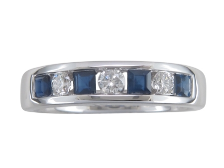 4 Square Sapphire 0.65ct, 3 Round Diamond 0.25ct