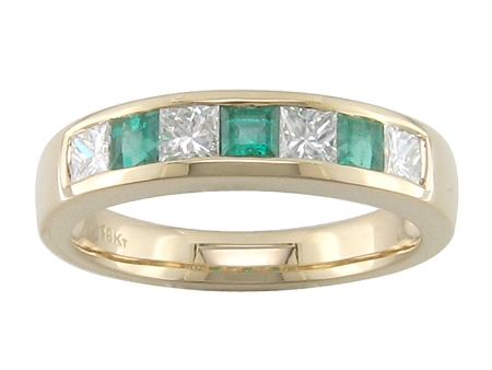 18K Yellow Gold Channel Set Emerald & Diamond Band