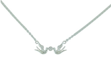14K White Gold Diamond Bird Necklace