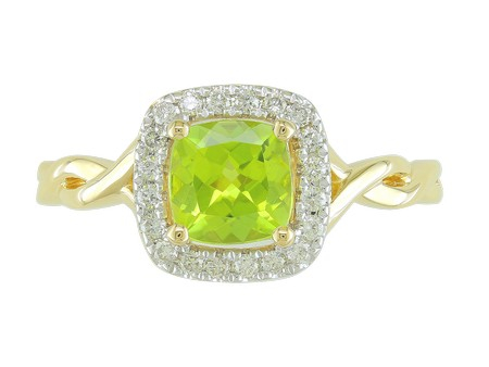 1 Cushion Peridot 6 x 6mm, 20 Round Diamond 0.18ct