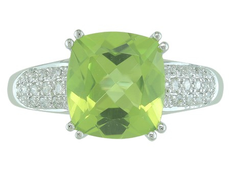 26 Round Diamond 0.18ct, 1 Cushion Peridot 9 x 9mm