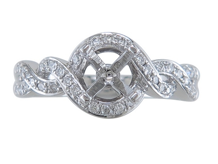 14K White Gold Twist Diamond Semi Mount Engagement Ring