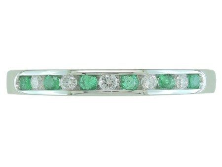 14K White Gold Emerald & Diamond Channel Set Band