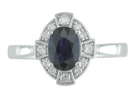 12 Round Diamond 0.15ct, 1 Oval Sapphire 7 x 5mm