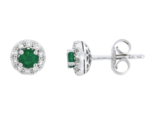 14K White Gold Emerald & Diamond Halo Earrings, Not Eligible For Memo