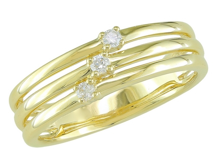 14K Yellow Gold Three Stone Diaginal Diamond Ring