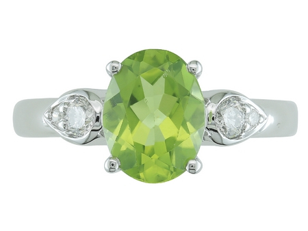 1 Oval Peridot 9 x 7mm, 4 Round Diamond 0.16ct