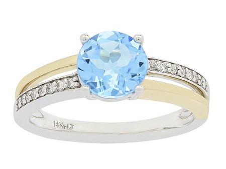 14K Yellow & White Gold Blue Topaz & Diamond Ring