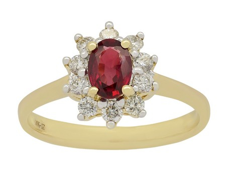 1 Oval Ruby 6 x 4mm, 10 Round Diamond 0.30ct